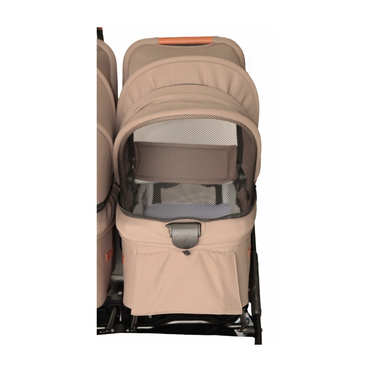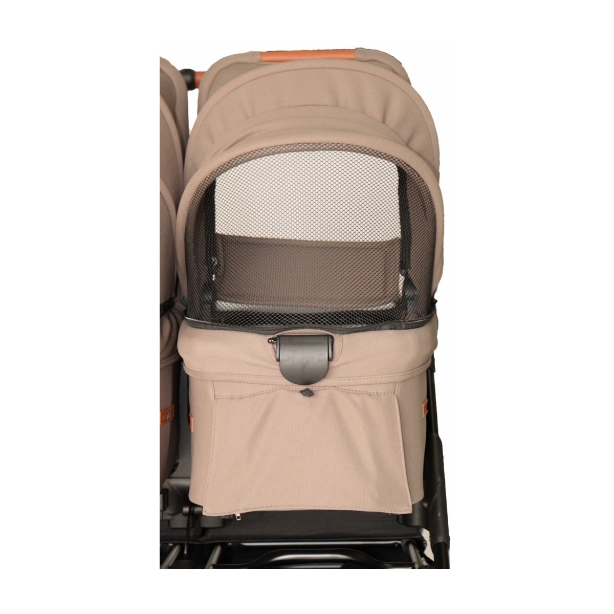 La nacelle de la Easy Twin 5 est conçue pour offrir un maximum de confort et de bien-être à votre bébé. Elle est équipée de fenêtres de ventilation avec fermetures éclair, situées à la fois sur la partie supérieure et inférieure, permettant une circulation d’air idéale lors des journées chaudes.